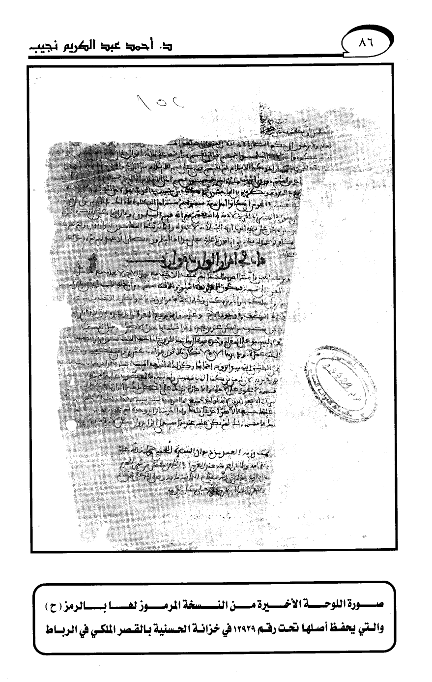 والتي يحفظ أصلها رقم 12929 في خزانة الحسنية بالقصر الملكي في الرباط