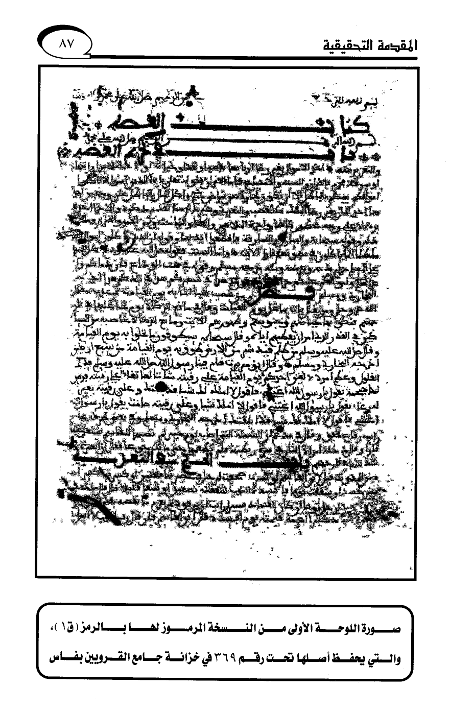 صورة اللوحة الأولي من النسخة المرموز لها بالرمز (ق 1)،