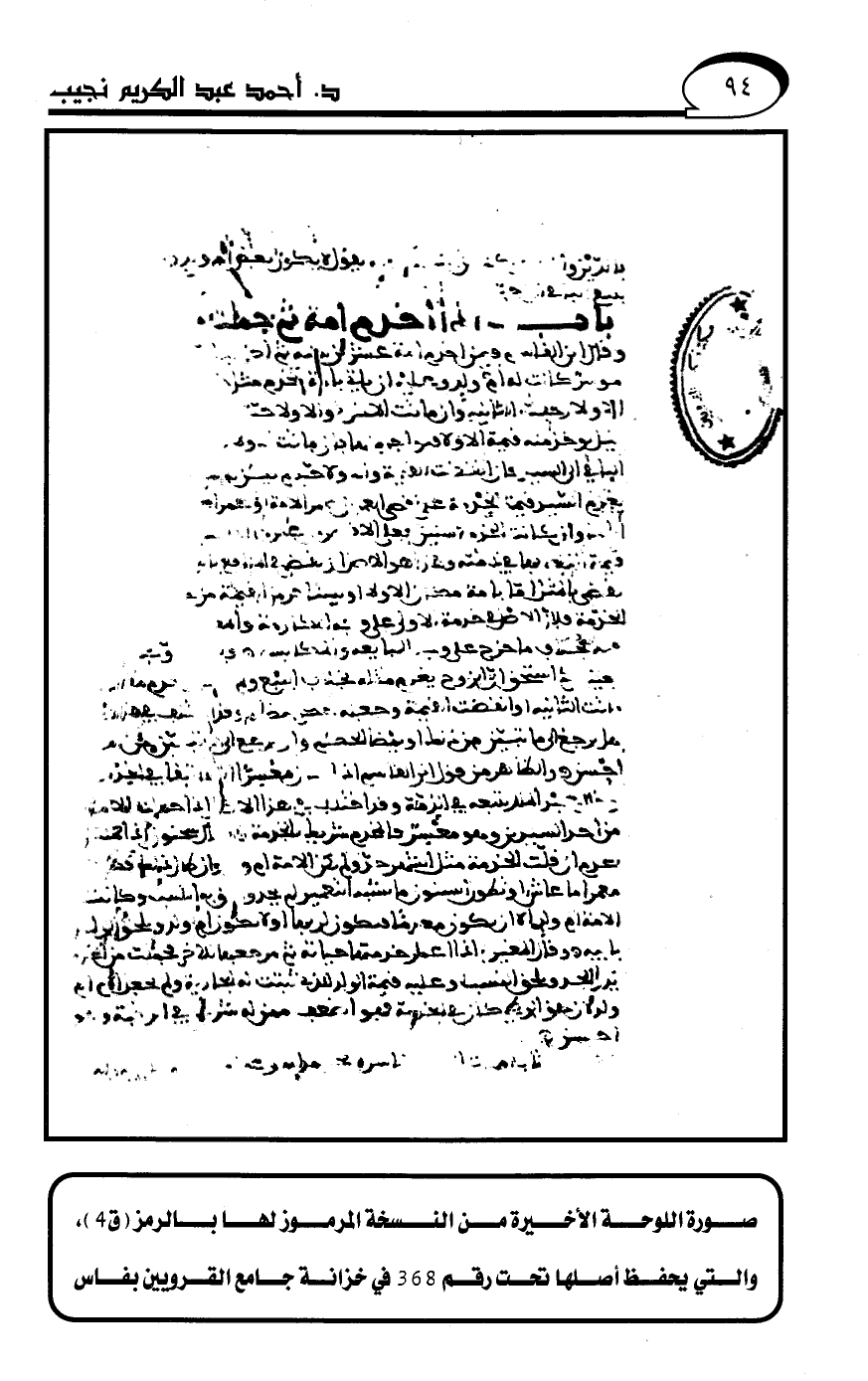 والتي يحفظ أصلها تحت رقم 368 في خزانة جامع القرويين بفاس