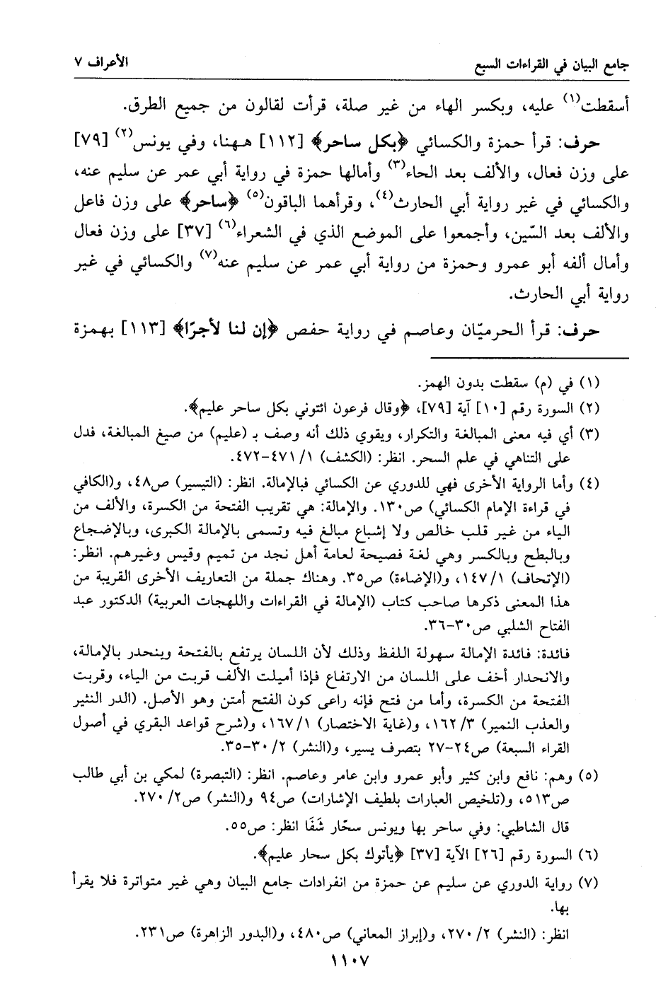 (7) رواية الدوري عن سليم عن حمزة من انفرادات جامع البيان وهي غير متواترة فلا يقرأ بها.