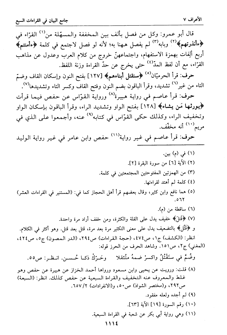 (5) هما نافع وابن كثير، وقال بعضهم قرأ أهل الحجاز كما في: (المستنير في القراءات العشر) 562.
