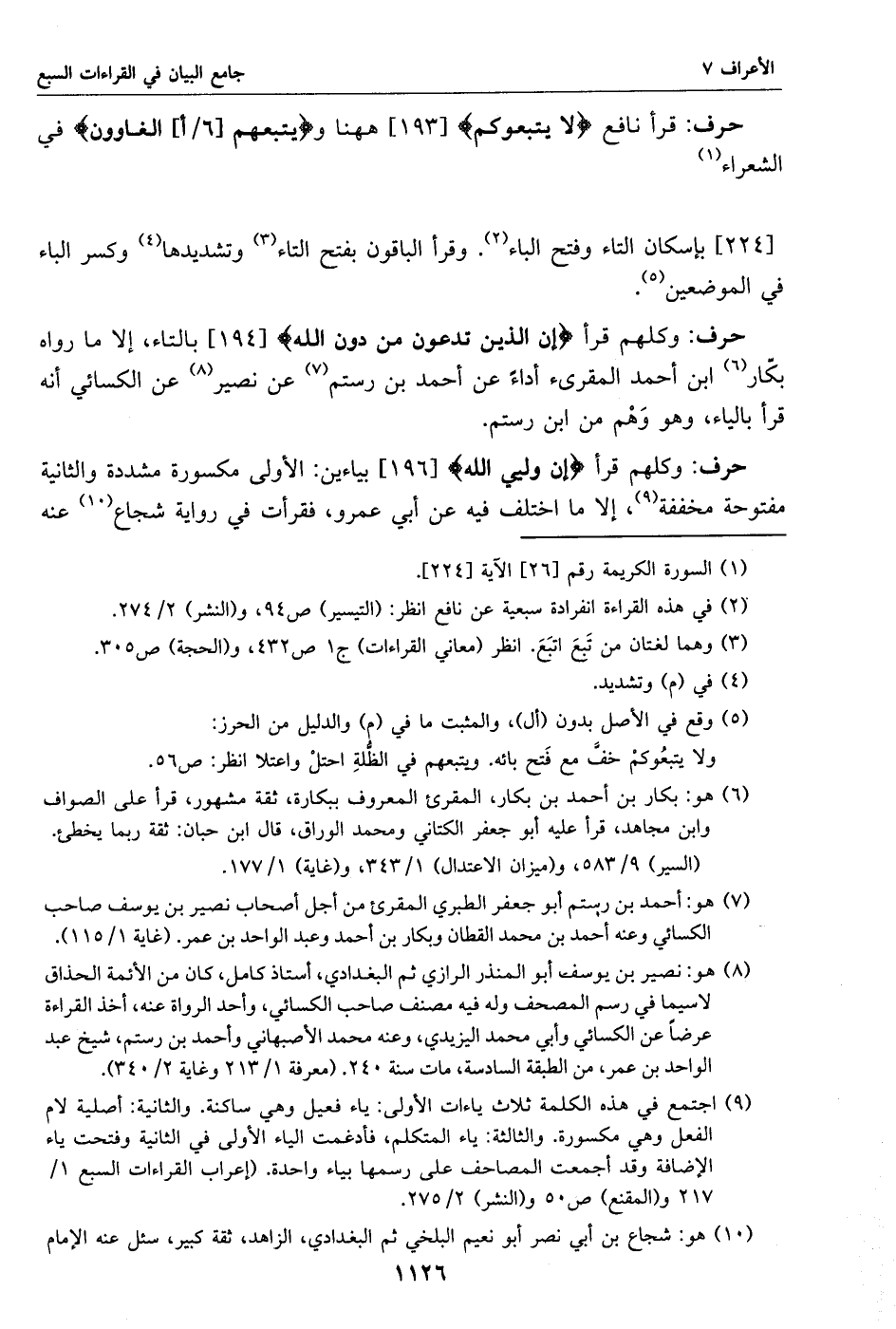 (7) هو: أحمد بن رستم أبو جعفر الطبري المقرئ من أجل أصحاب نصير بن يوسف صاحب الكسائي وعنه أحمد بن محمد القطان وبكار بن أحمد وعبد الواحد بن عمر. (غاية 1/ 115).