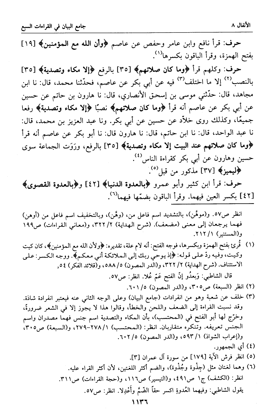 وكلهم قرأ وما كان صلاتهم [35] بالرفع إلا مكاء وتصدية [35] بالنصب «2» إلا ما اختلف «3» فيه عن أبي بكر عن عاصم، فحدّثنا محمد، قال: نا ابن مجاهد، قال: حدّثني موسى بن إسحاق الأنصاري، قال: نا هارون بن حاتم عن حسين عن أبي بكر عن عاصم أنه قرأ وما كان صلاتهم نصبا إلا مكاء وتصدية رفعا جميعا، وكذلك روى خلّاد عن حسين عن أبي بكر. ونا عبد العزيز بن محمد، قال: