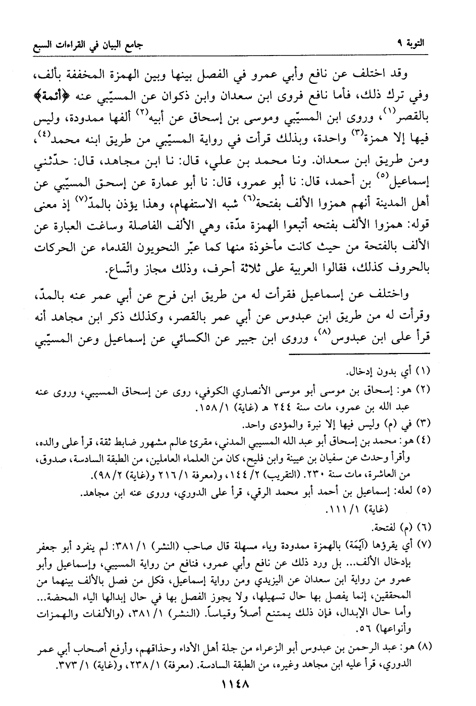 (8) هو: عبد الرحمن بن عبدوس أبو الزعراء من جلة أهل الأداء وحذاقهم، وأرفع أصحاب أبي عمر الدوري، قرأ عليه ابن مجاهد وغيره، من الطبقة السادسة. (معرفة) 1/ 238، و (غاية) 1/ 373.