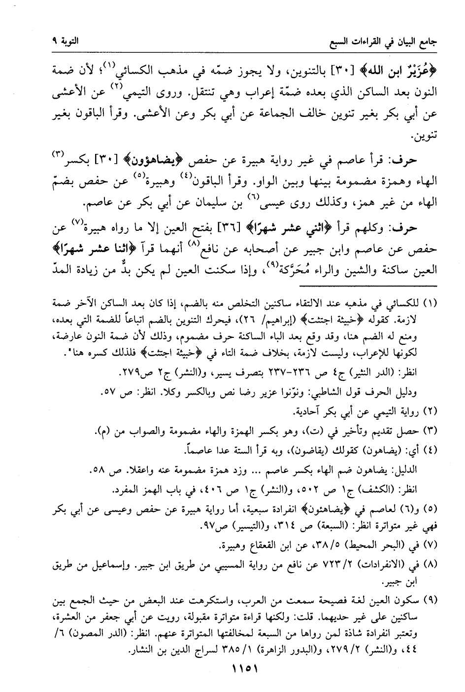 انظر: (الدر النثير) ج 4 ص 236 - 237 بتصرف يسير، و (النشر) ج 2 ص 279.
