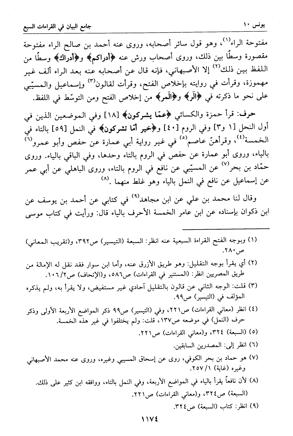 (9) انظر: كتاب (السبعة) ص 324.