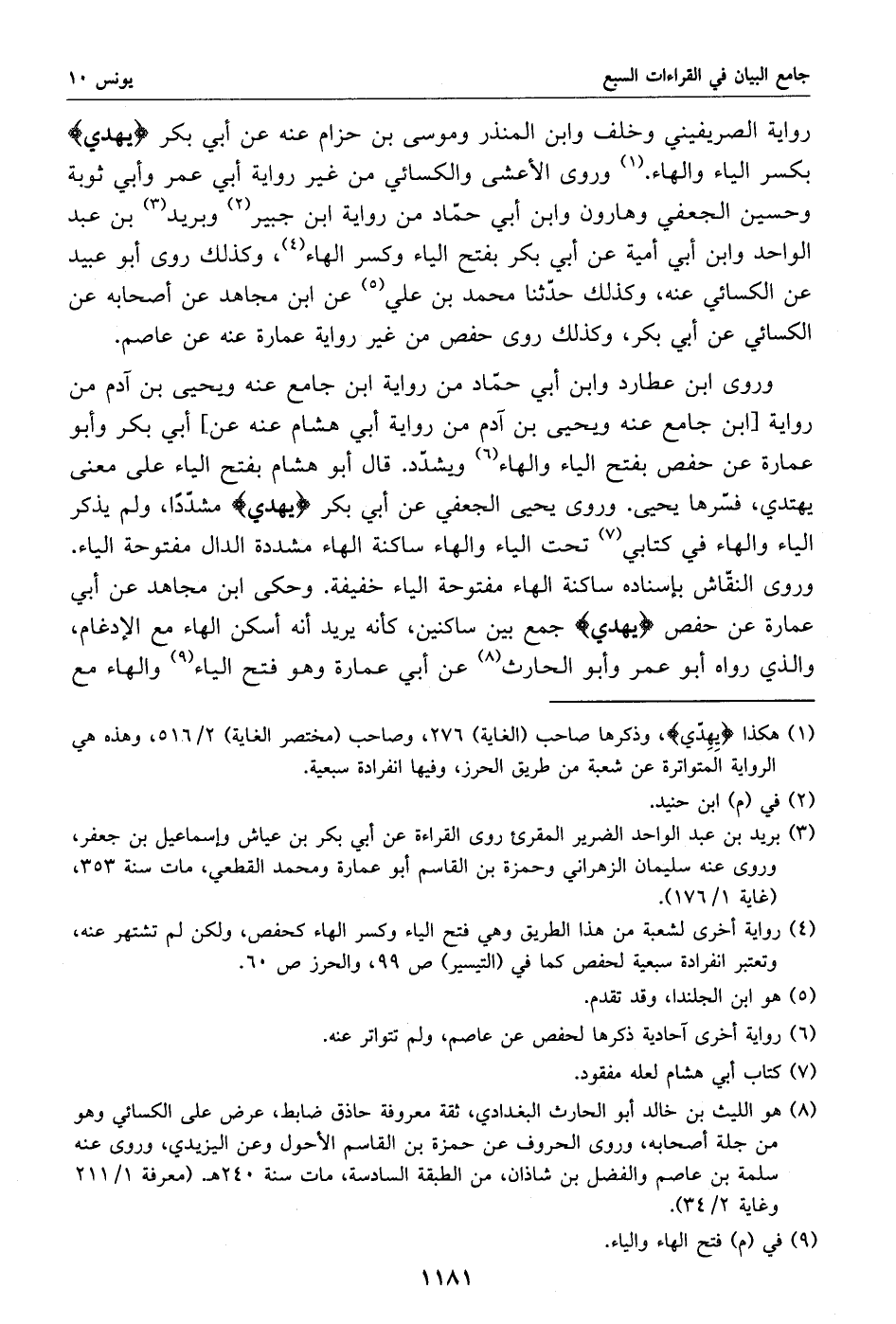 (1) هكذا يهدّي، وذكرها صاحب (الغاية) 276، وصاحب (مختصر الغاية) 2/ 516، وهذه هي الرواية المتواترة عن شعبة من طريق الحرز، وفيها انفرادة سبعية.