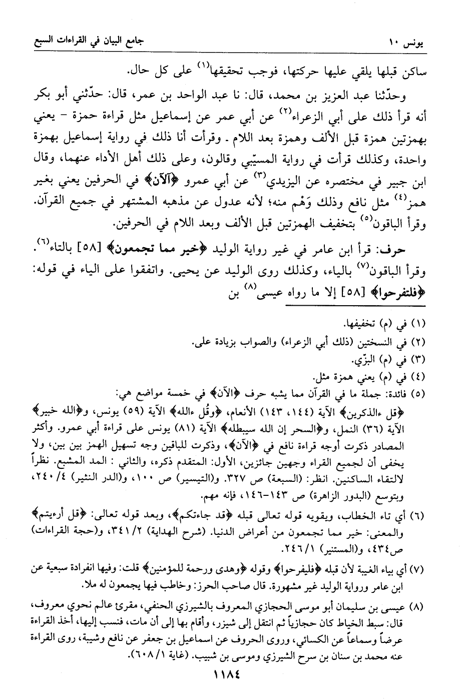 (6) أي تاء الخطاب، ويقويه قوله تعالى قبله قد جاءتكم، وبعد قوله تعالى: قل أرءيتم والمعنى: خير مما تجمعون من أعراض الدنيا. (شرح الهداية) 2/ 341، و (حجة القراءات) ص 434، و (المستنير) 1/ 246.