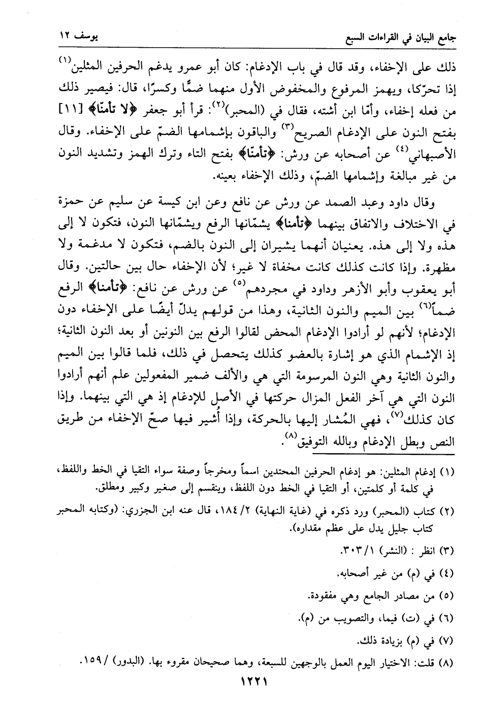 (8) قلت: الاختيار اليوم العمل بالوجهين للسبعة، وهما صحيحان مقروء بها. (البدور) / 159.