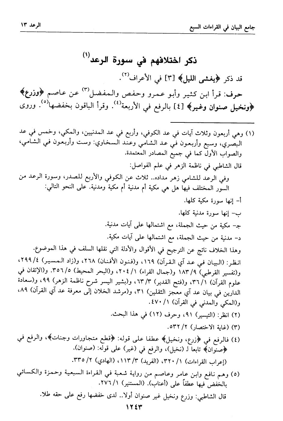 وفي الرعد للشامي زهر مداده .. ثلاث عن الكوفي والأربع للصدر، وسورة الرعد من السور المختلف فيها هل هي مكية أم مدنية أم مكية ومدنية. على النحو التالي:
