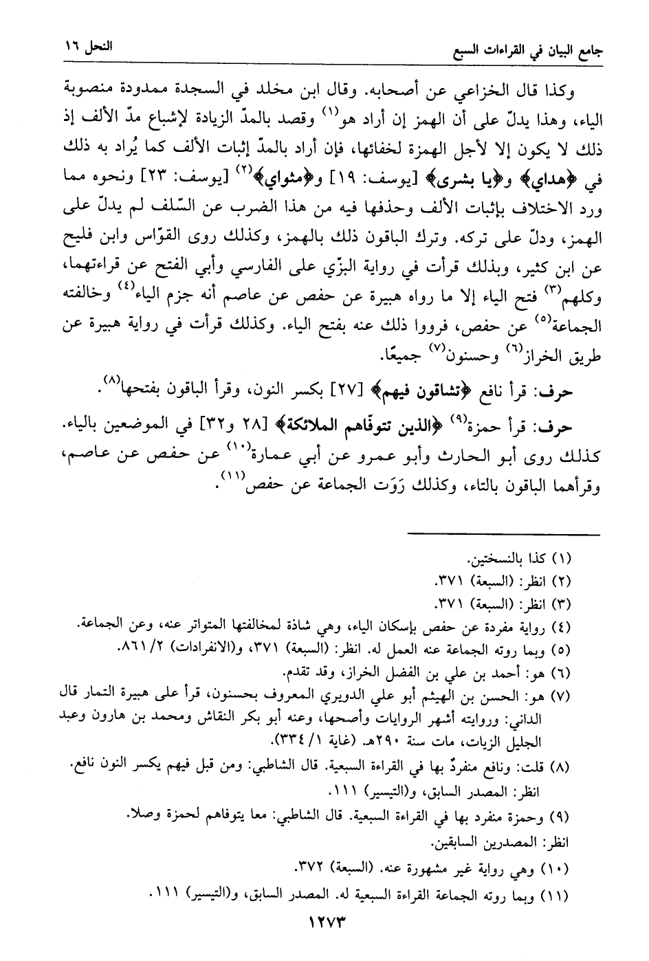 (11) وبما روته الجماعة القراءة السبعية له. المصدر السابق، و (التيسير) 111.