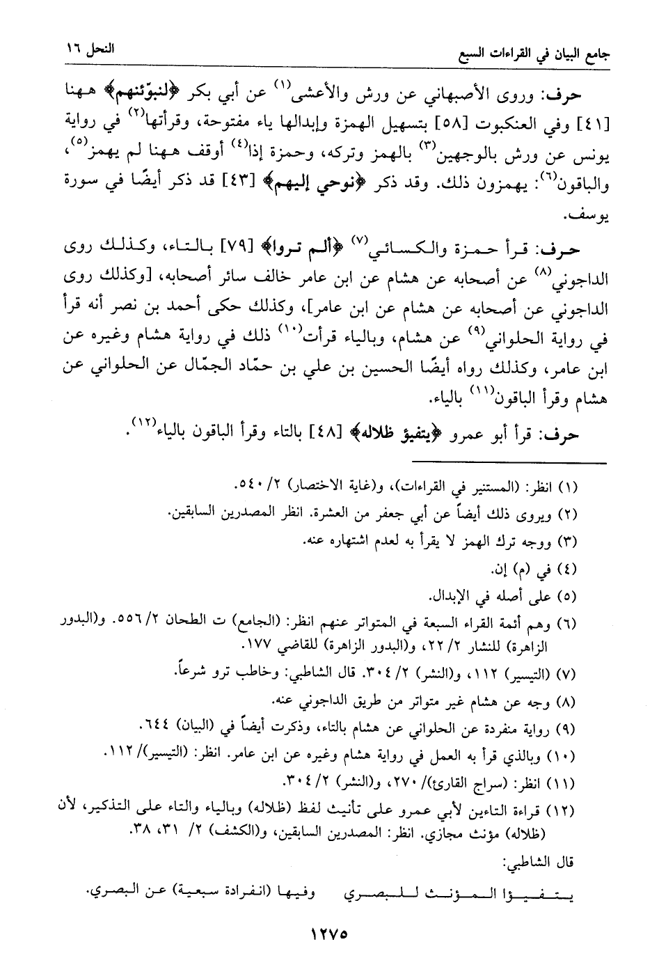 (6) وهم أئمة القراء السبعة في المتواتر عنهم انظر: (الجامع) ت الطحان 2/ 556. و (البدور الزاهرة) للنشار 2/ 22، و (البدور الزاهرة) للقاضي 177.