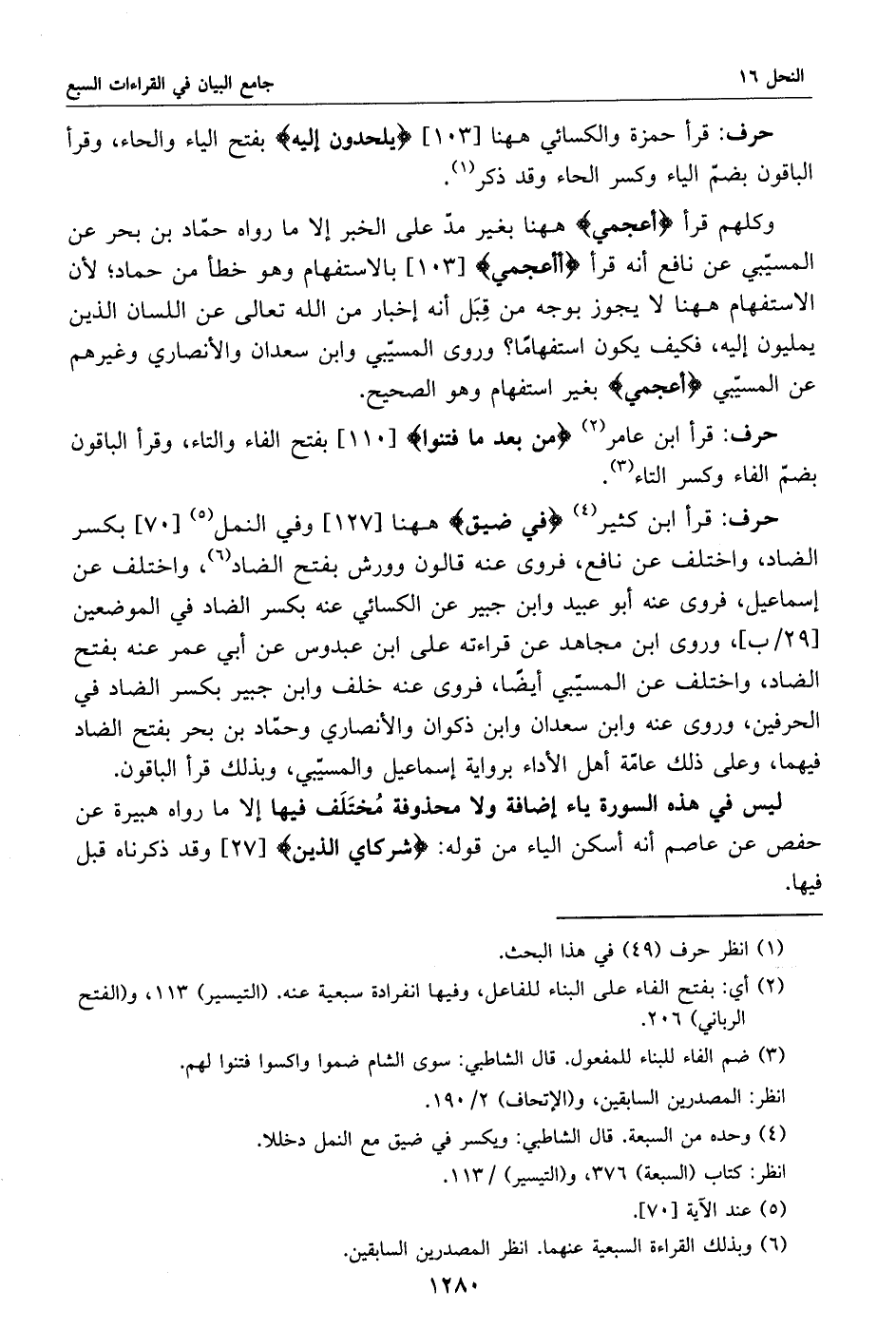 قرأ حمزة والكسائي هاهنا [103] يلحدون إليه بفتح الياء والحاء، وقرأ الباقون بضمّ الياء وكسر الحاء وقد ذكر «1».