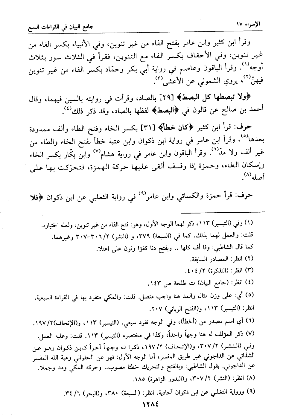 ولا تبصطها كل البصط [29] بالصاد، وقرأت في روايته بالسين فيهما، وقال أحمد بن صالح عن قالون في البصط لفظها بالصاد، وقد ذكر ذلك «4».