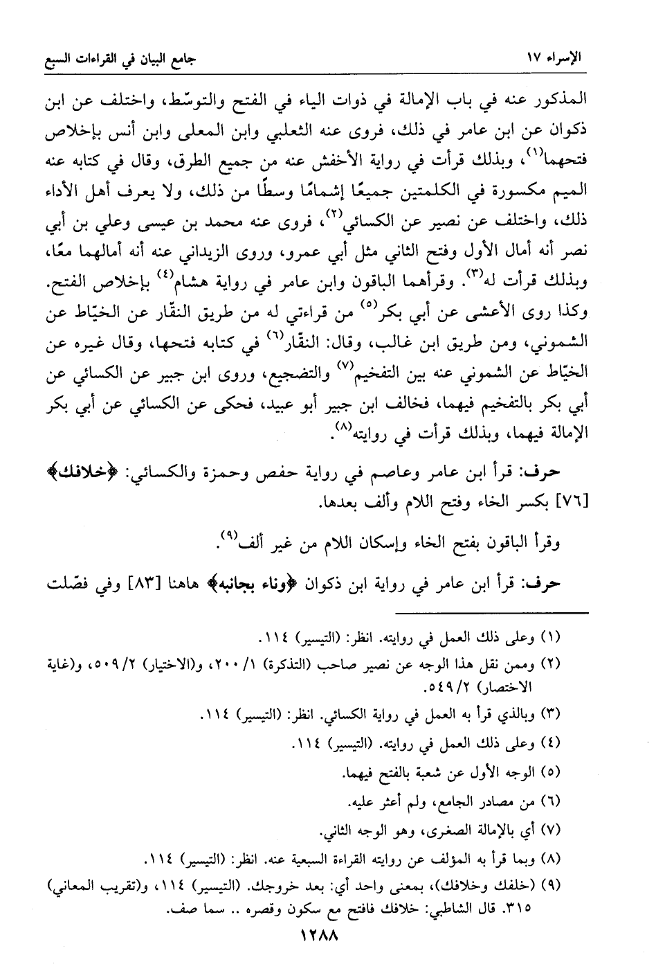 (1) وعلى ذلك العمل في روايته. انظر: (التيسير) 114.