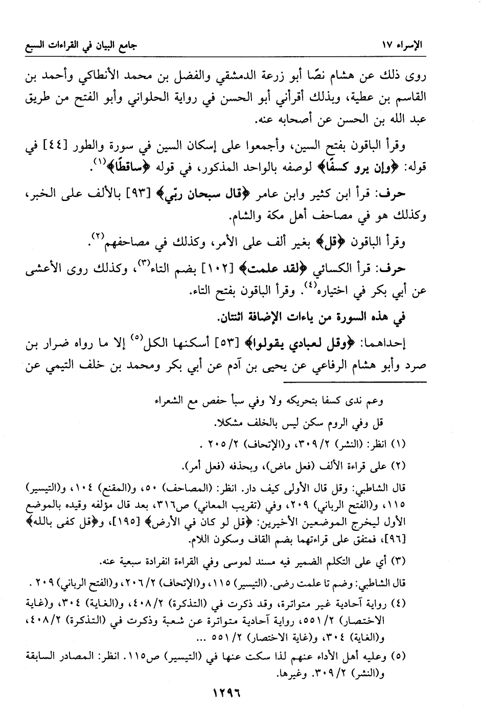 إحداهما: وقل لعبادي يقولوا [53] أسكنها الكل «5» إلا ما رواه ضرار بن صرد وأبو هشام الرفاعي عن يحيى بن آدم عن أبي بكر ومحمد بن خلف التيمي عن