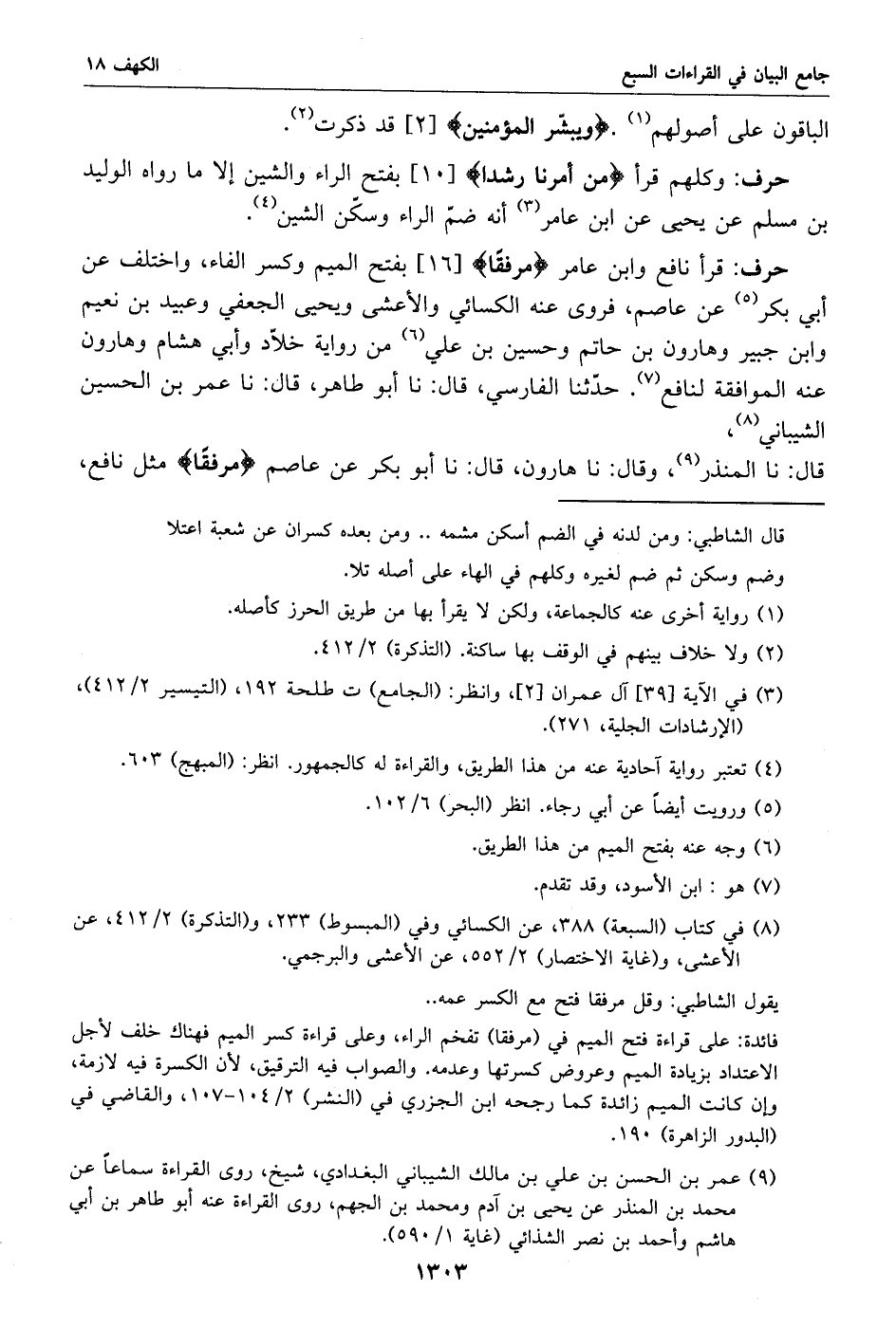 (7) في كتاب (السبعة) 388، عن الكسائي وفي (المبسوط) 233، و (التذكرة) 2/ 412، عن الأعشى، و (غاية الاختصار) 2/ 552، عن الأعشى والبرجمي.