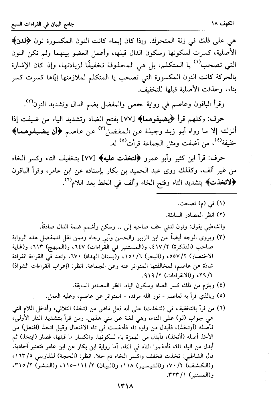 وكلهم قرأ يضيفوهما [77] بفتح الضاد وتشديد الياء من ضيفت إذا أنزلته إلا ما رواه أبو زيد وجبلة عن المفضل «3» عن عاصم أن يضيفوهما خفيفة «4»، من أضفت ومثل الجماعة قرأت «5» له.