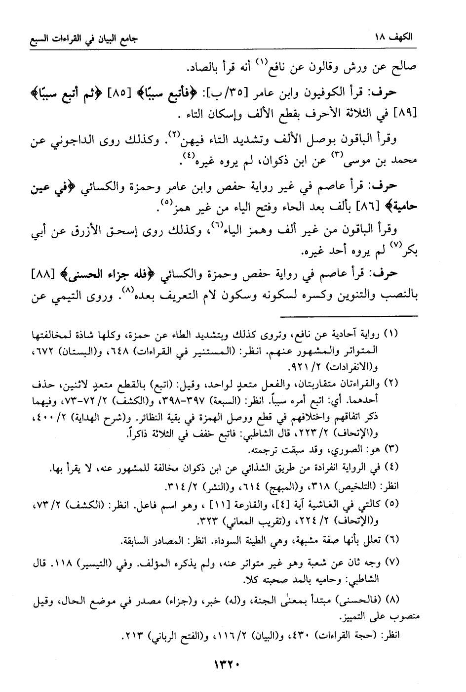 قرأ عاصم في رواية حفص وحمزة والكسائي فله جزاء الحسنى [88] بالنصب والتنوين وكسره لسكونه وسكون لام التعريف بعده «8». وروى التيمي عن