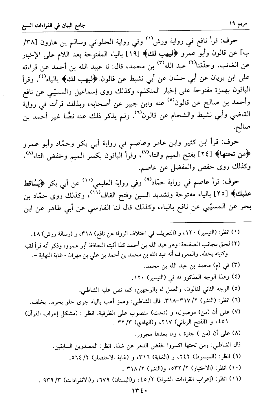 (2) لحق بجانب الصفحة: وهو عبد الله بن أحمد كذا أثبته الحافظ أبو عمرو، وذكر أنه قرأ لقبه وكنيته بخطه. والمعروف أنه عبد الله بن محمد بن أحمد بن علي بن مهران- غاية النهاية-.