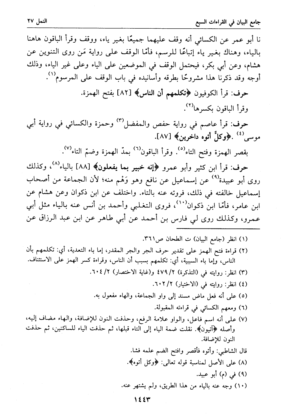 (1) انظر (جامع البيان) ت الطحان ص 361.