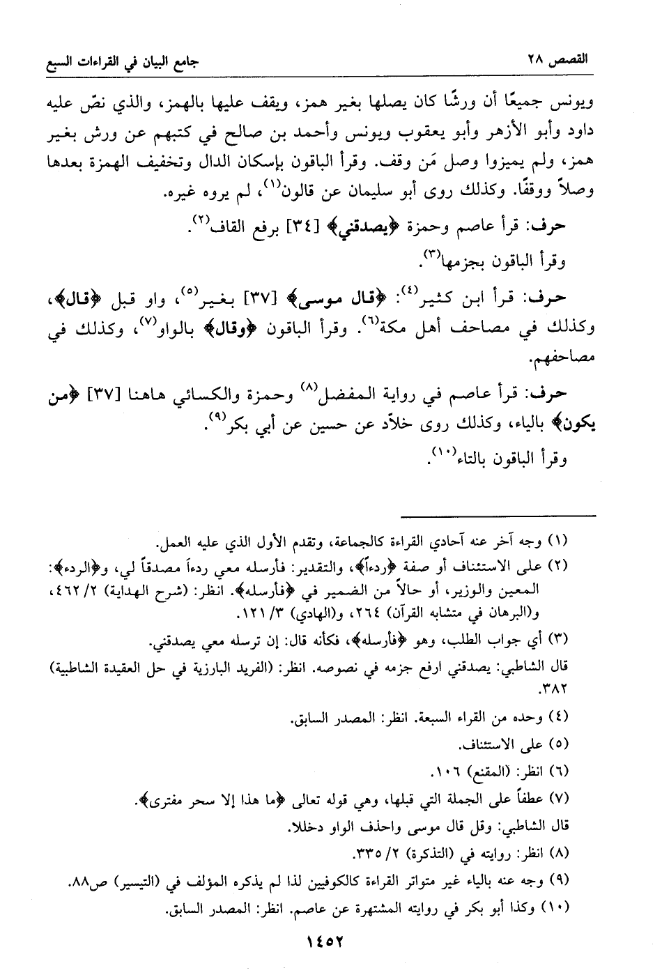 قرأ عاصم وحمزة يصدقني [34] برفع القاف «2».