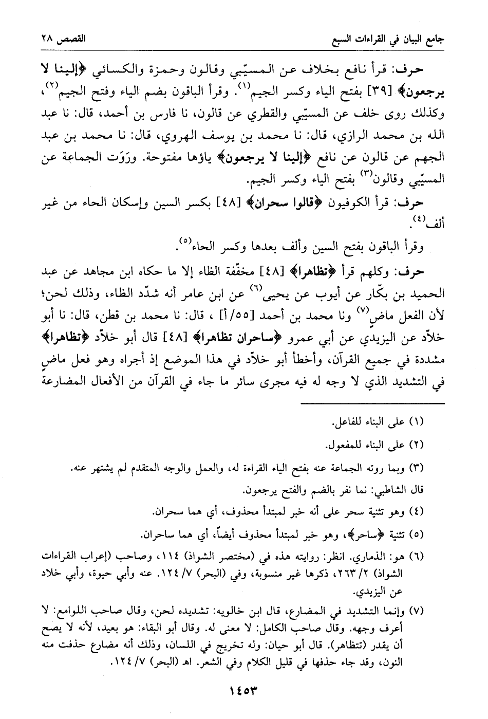 (7) وإنما التشديد في المضارع، قال ابن خالويه: تشديده لحن، وقال صاحب اللوامع: لا أعرف وجهه. وقال صاحب الكامل: لا معنى له. وقال أبو البقاء: هو بعيد، لأنه لا يصح أن يقدر (تتظاهر). قال أبو حيان: وله تخريج في اللسان، وذلك أنه مضارع حذفت منه النون، وقد جاء حذفها في قليل الكلام وفي الشعر. اهـ (البحر) 7/ 124.
