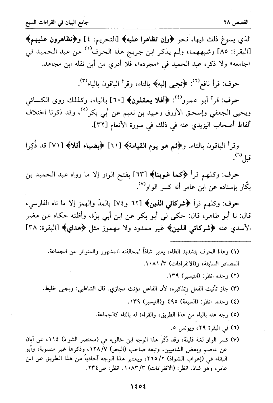 الذي يسوغ ذلك فيها، نحو وإن تظاهرا عليه [التحريم: 4] وتظاهرون عليهم [البقرة: 85] وشبههما، ولم يذكر ابن جريج هذا الحرف «1» عن عبد الحميد في «جامعه» ولا ذكره عبد الحميد في «مجرده»، فلا أدري من أين نقله ابن مجاهد.