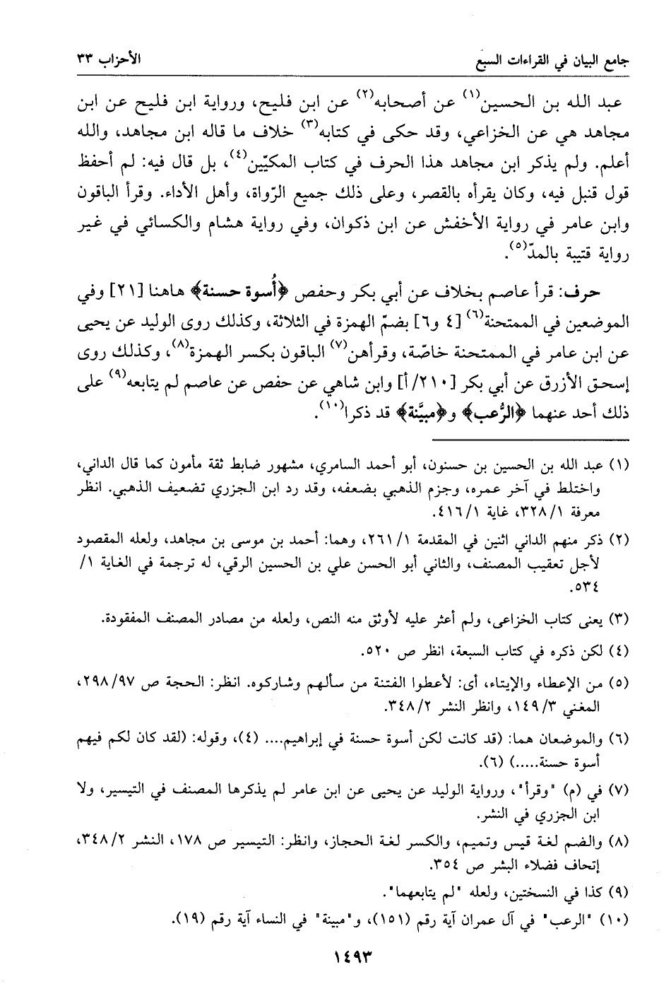 (1) عبد الله بن الحسين بن حسنون، أبو أحمد السامري، مشهور ضابط ثقة مأمون كما قال الداني، واختلط في آخر عمره، وجزم الذهبي بضعفه، وقد رد ابن الجزري تضعيف الذهبي. انظر معرفة 1/ 328، غاية 1/ 416.