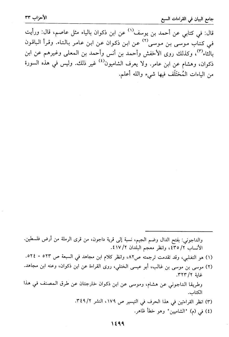 (1) هو التغلبي، وقد تقدمت ترجمته ص 82، وانظر كلام ابن مجاهد في السبعة ص 523 - 524.