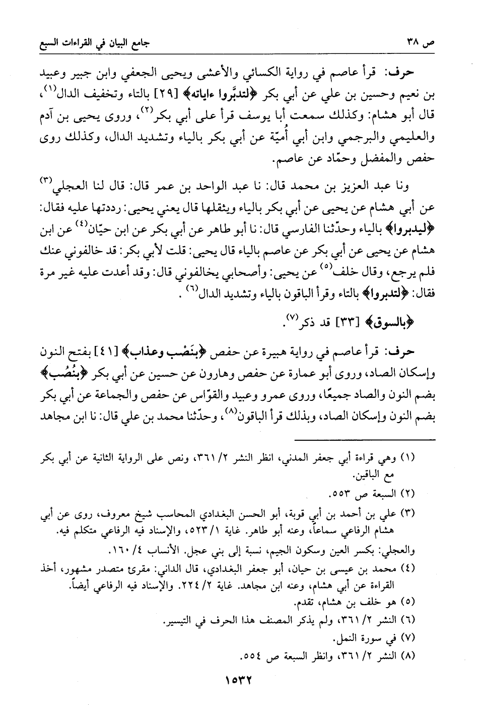 (4) محمد بن عيسى بن حيان، أبو جعفر البغدادي، قال الداني: مقرئ متصدر مشهور، أخذ القراءة عن أبي هشام، وعنه ابن مجاهد. غاية 2/ 224. والإسناد فيه الرفاعي أيضا.