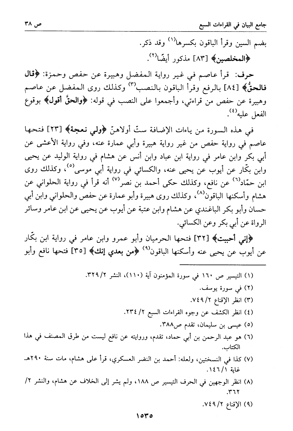 (1) التيسير ص 160 في سورة المؤمنون آية (110)، النشر 2/ 329.