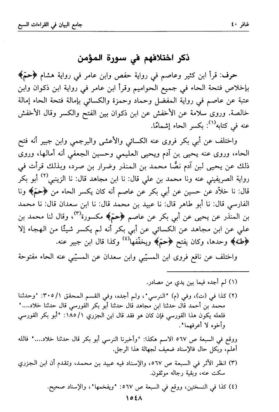 (3) انظر الأثر في السبعة ص 567، والإسناد فيه عبيد بن محمد، وتقدم أن ابن الجزري سكت عنه، وبقية رجاله موثقون.