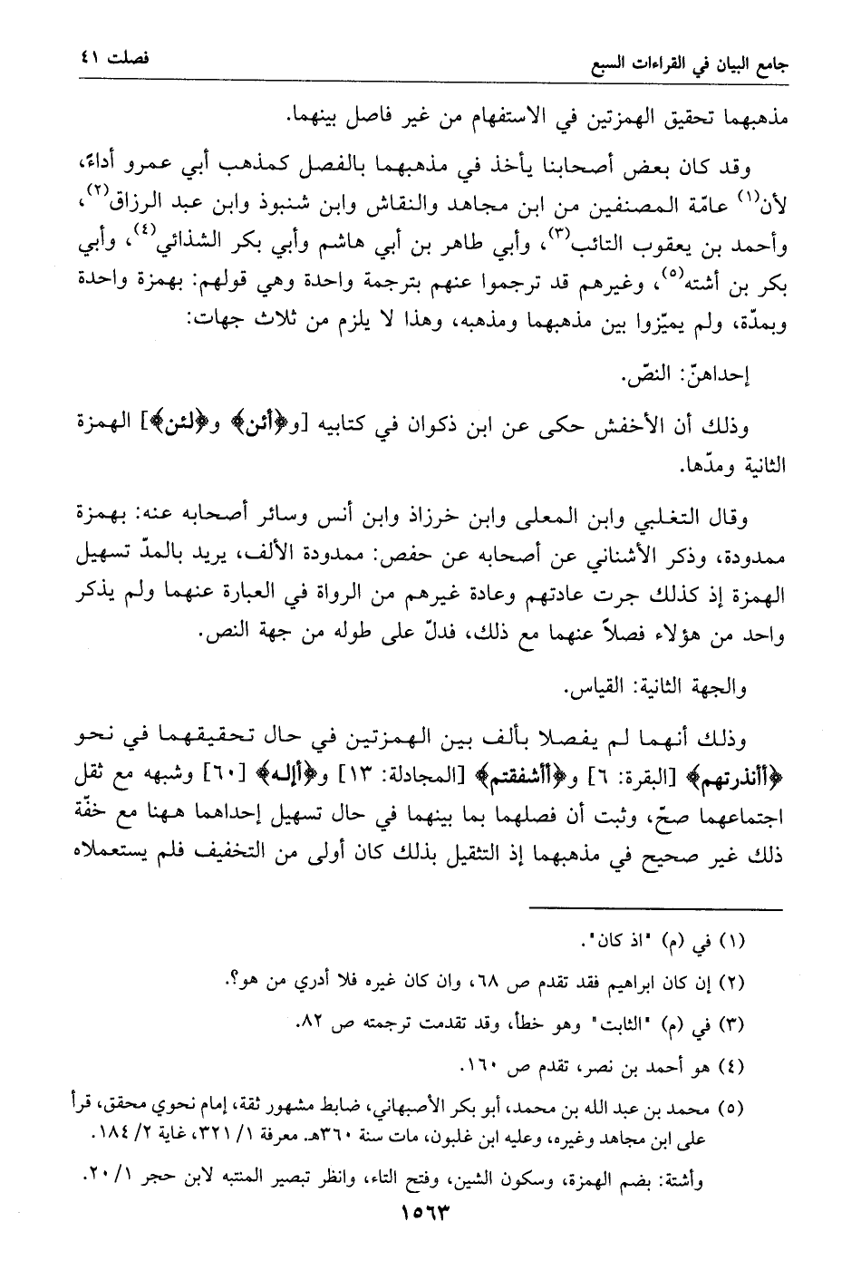 (5) محمد بن عبد الله بن محمد، أبو بكر الأصبهاني، ضابط مشهور ثقة، إمام نحوي محقق، قرأ على ابن مجاهد وغيره، وعليه ابن غلبون، مات سنة 360 هـ. معرفة 1/ 321، غاية 2/ 184.