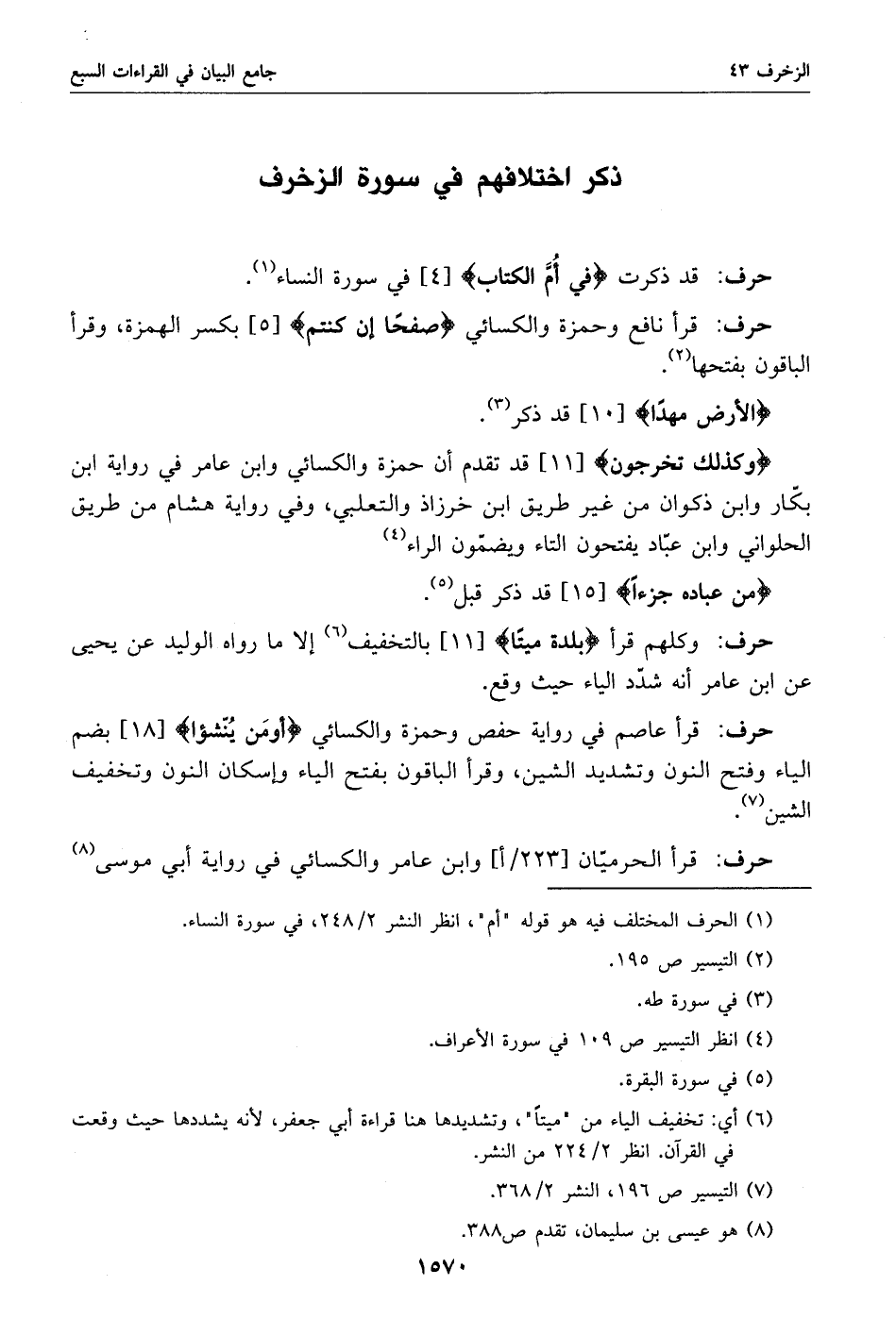 (7) التيسير ص 196، النشر 2/ 368.