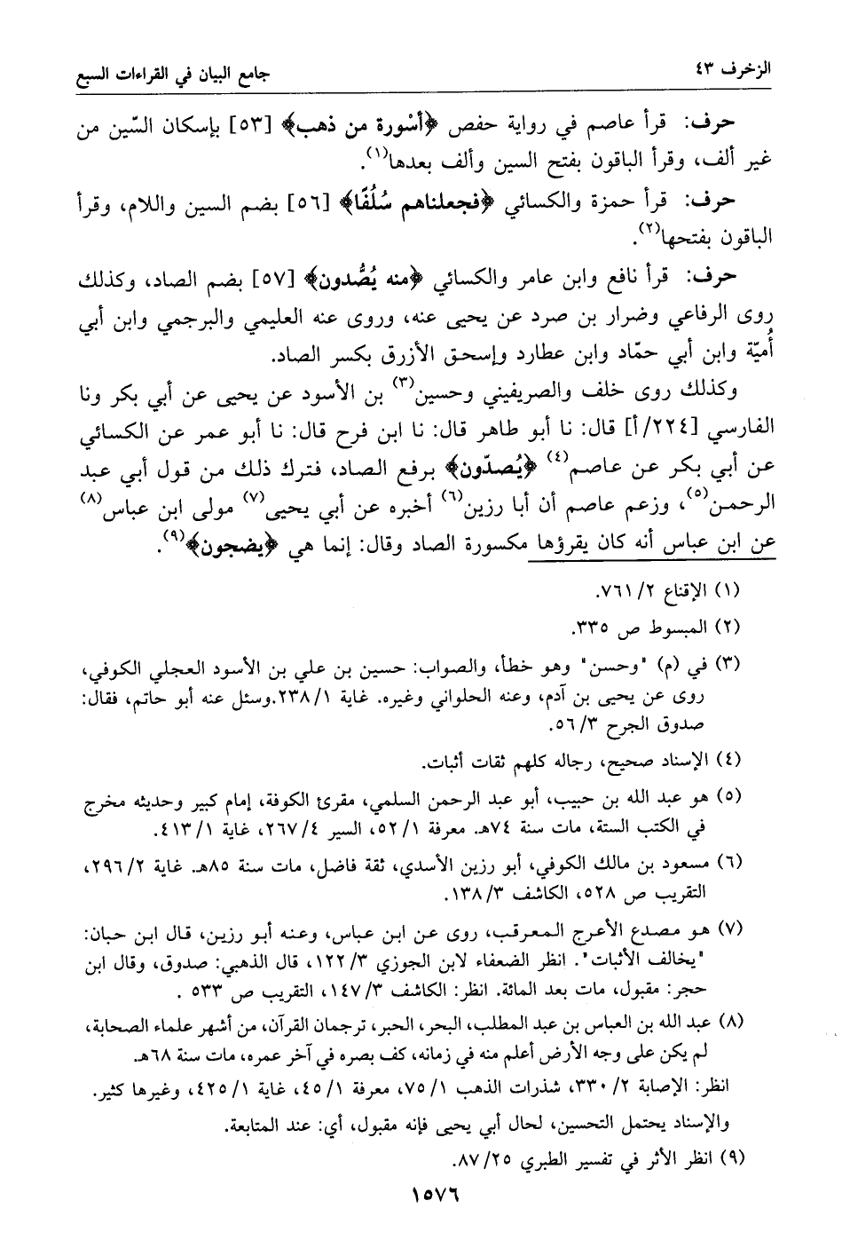 قرأ نافع وابن عامر والكسائي منه يصّدون [57] بضم الصاد، وكذلك روى الرفاعي وضرار بن صرد عن يحيى عنه، وروى عنه العليمي والبرجمي وابن أبي أميّة وابن أبي حمّاد وابن عطارد وإسحاق الأزرق بكسر الصاد.