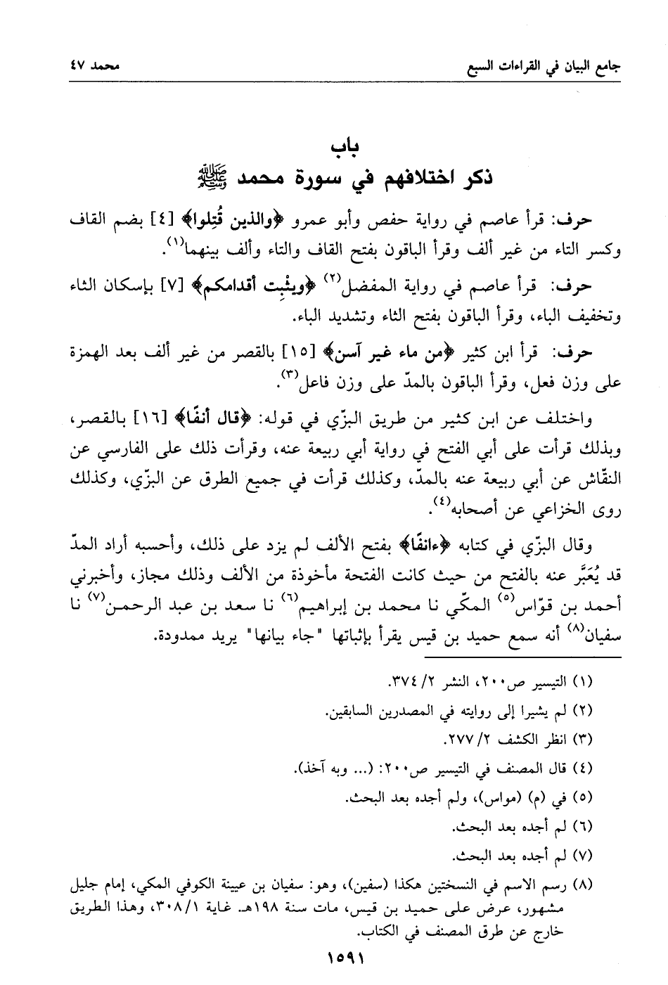 باب ذكر اختلافهم في سورة محمد صلّى الله عليه وسلم