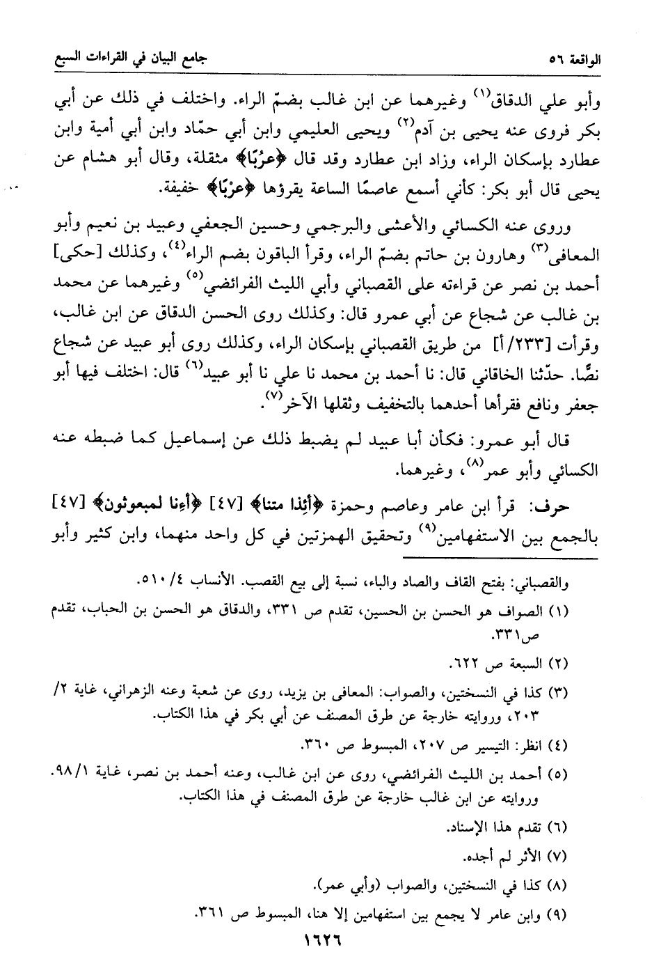 (4) انظر: التيسير ص 207، المبسوط ص 360.