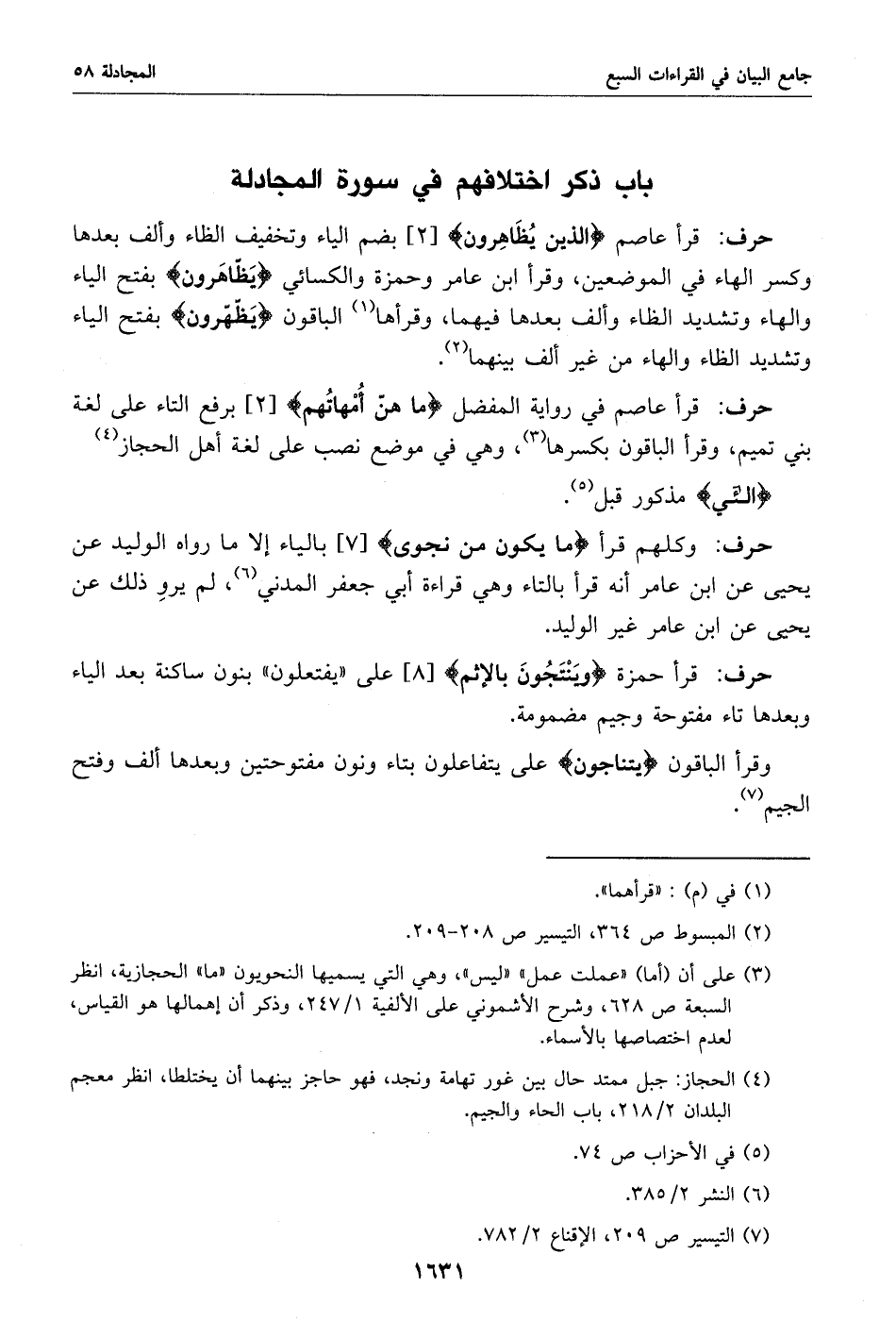 باب ذكر اختلافهم في سورة المجادلة