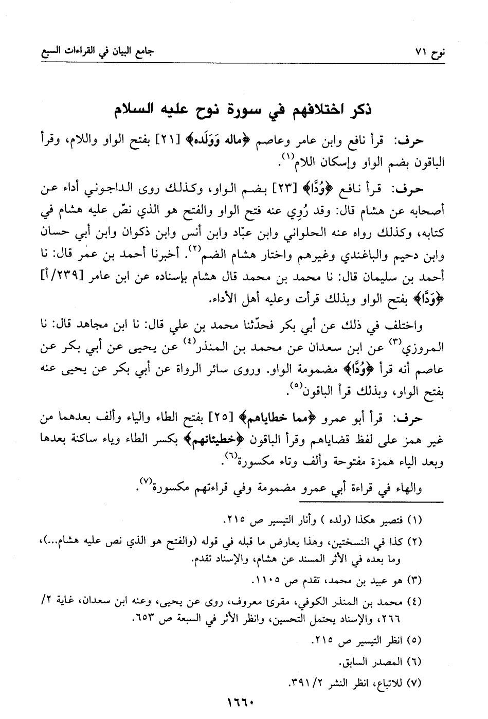 (4) محمد بن المنذر الكوفي، مقرئ معروف، روى عن يحيى، وعنه ابن سعدان، غاية 2/ 266، والإسناد يحتمل التحسين، وانظر الأثر في السبعة ص 653.