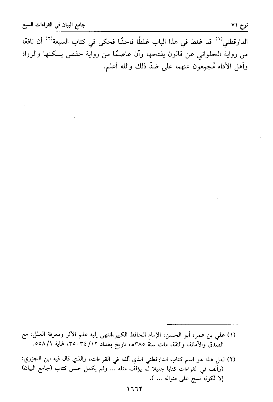 (2) لعل هذا هو اسم كتاب الدارقطني الذي ألفه في القراءات، والذي قال فيه ابن الجزري: