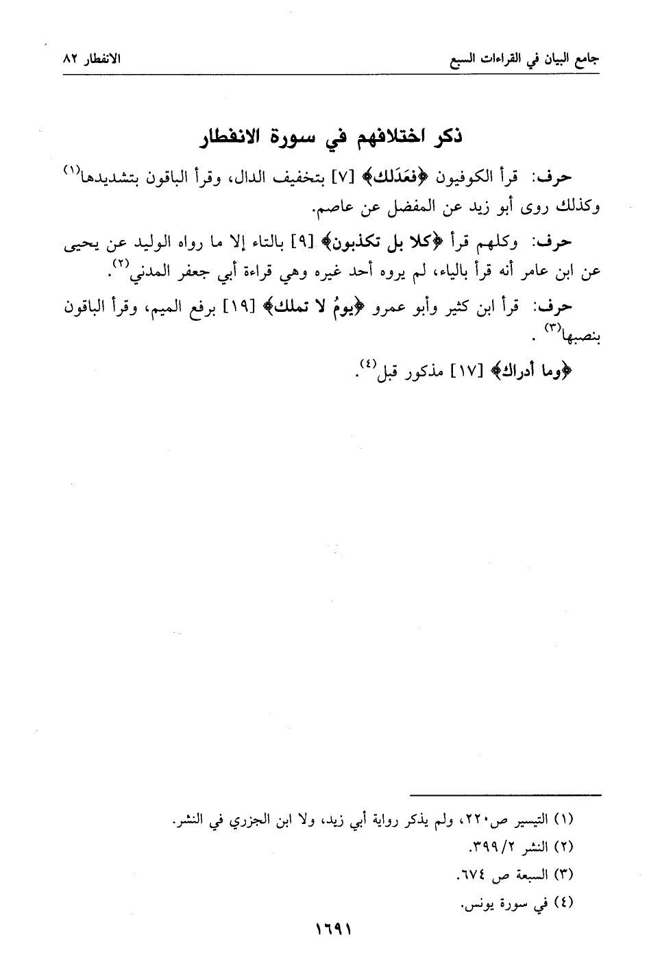 (1) التيسير ص 220، ولم يذكر رواية أبي زيد، ولا ابن الجزري في النشر.