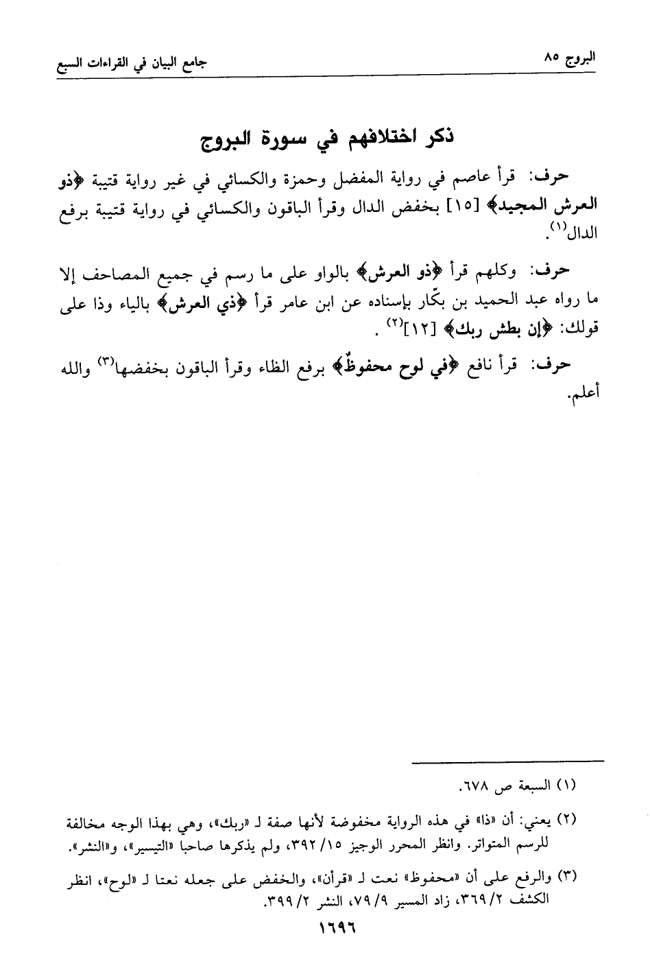 ذكر اختلافهم في سورة البروج