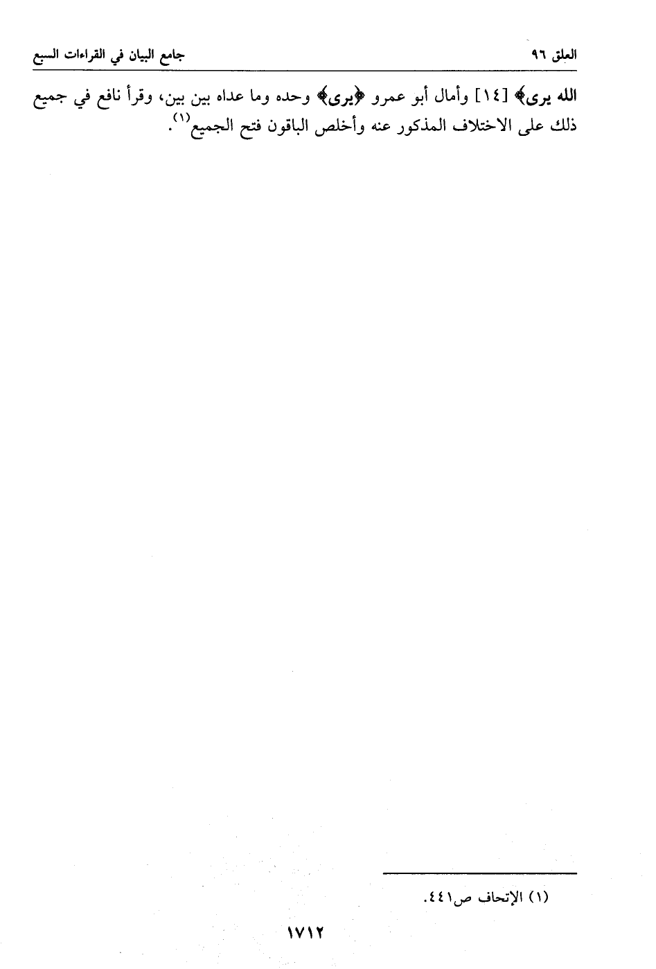 الله يرى [14] وأمال أبو عمرو يرى وحده وما عداه بين بين، وقرأ نافع في جميع ذلك على الاختلاف المذكور عنه وأخلص الباقون فتح الجميع «1».
