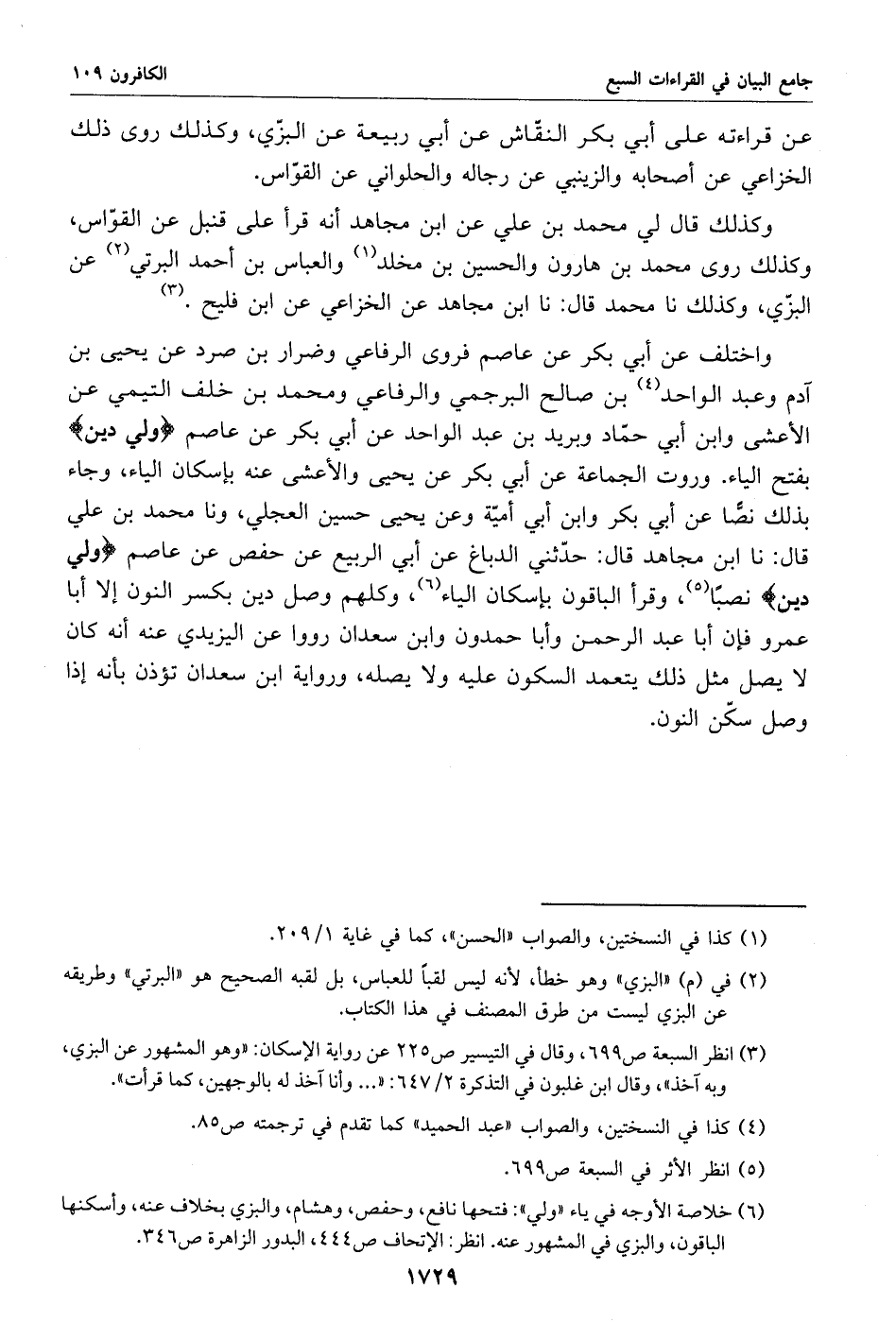 (2) في (م) «البزي» وهو خطأ، لأنه ليس لقبا للعباس، بل لقبه الصحيح هو «البرتي» وطريقه عن البزي ليست من طرق المصنف في هذا الكتاب.