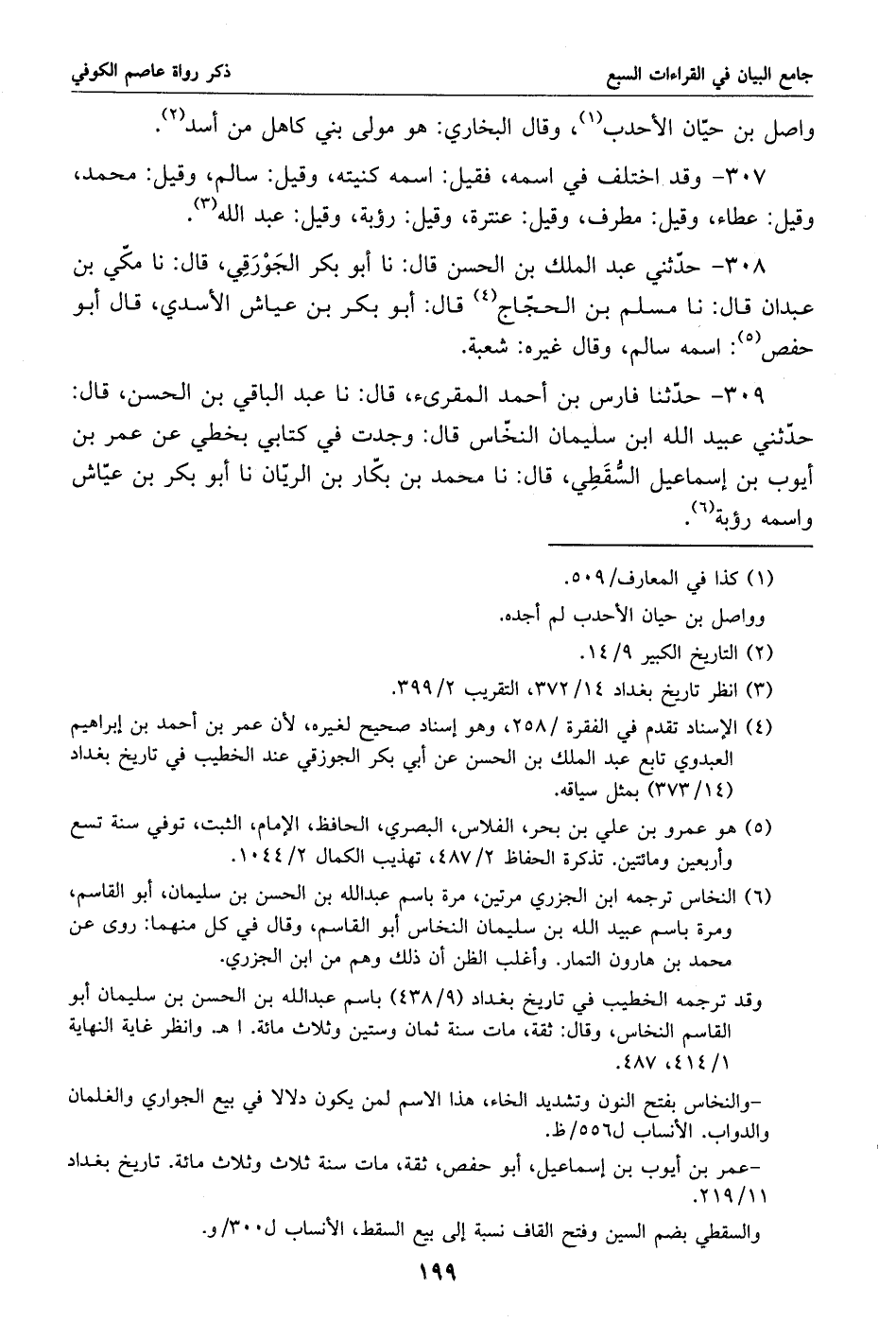308 - حدّثني عبد الملك بن الحسن قال: نا أبو بكر الجورقي، قال: نا مكّي بن عبدان قال: نا مسلم بن الحجّاج «4» قال: أبو بكر بن عياش الأسدي، قال أبو حفص «5»: اسمه سالم، وقال غيره: شعبة.
