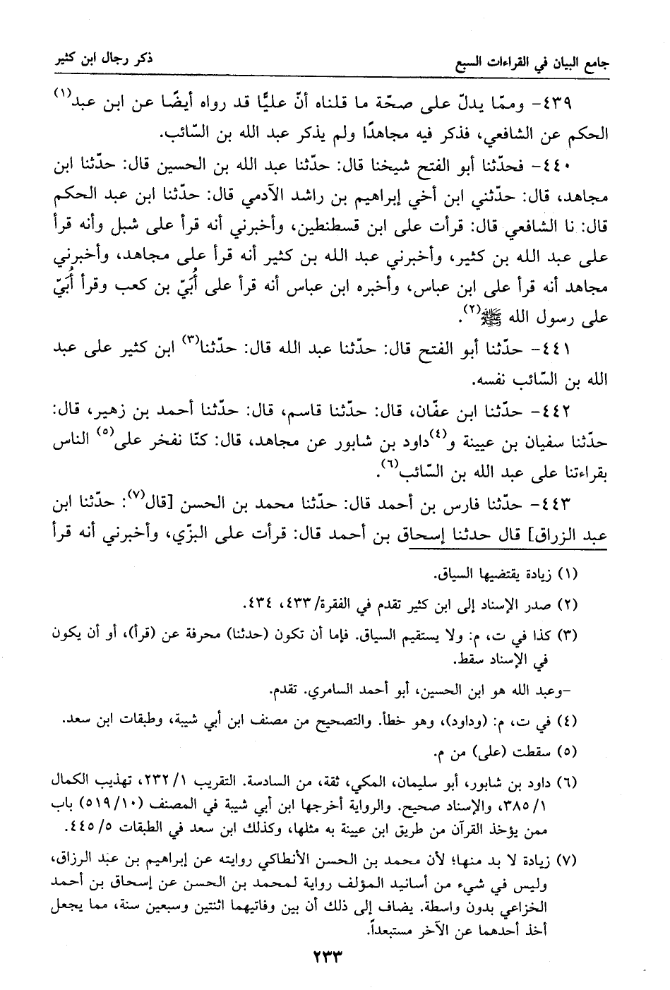 441 - حدّثنا أبو الفتح قال: حدّثنا عبد الله قال: حدّثنا «3» ابن كثير على عبد الله بن السّائب نفسه.