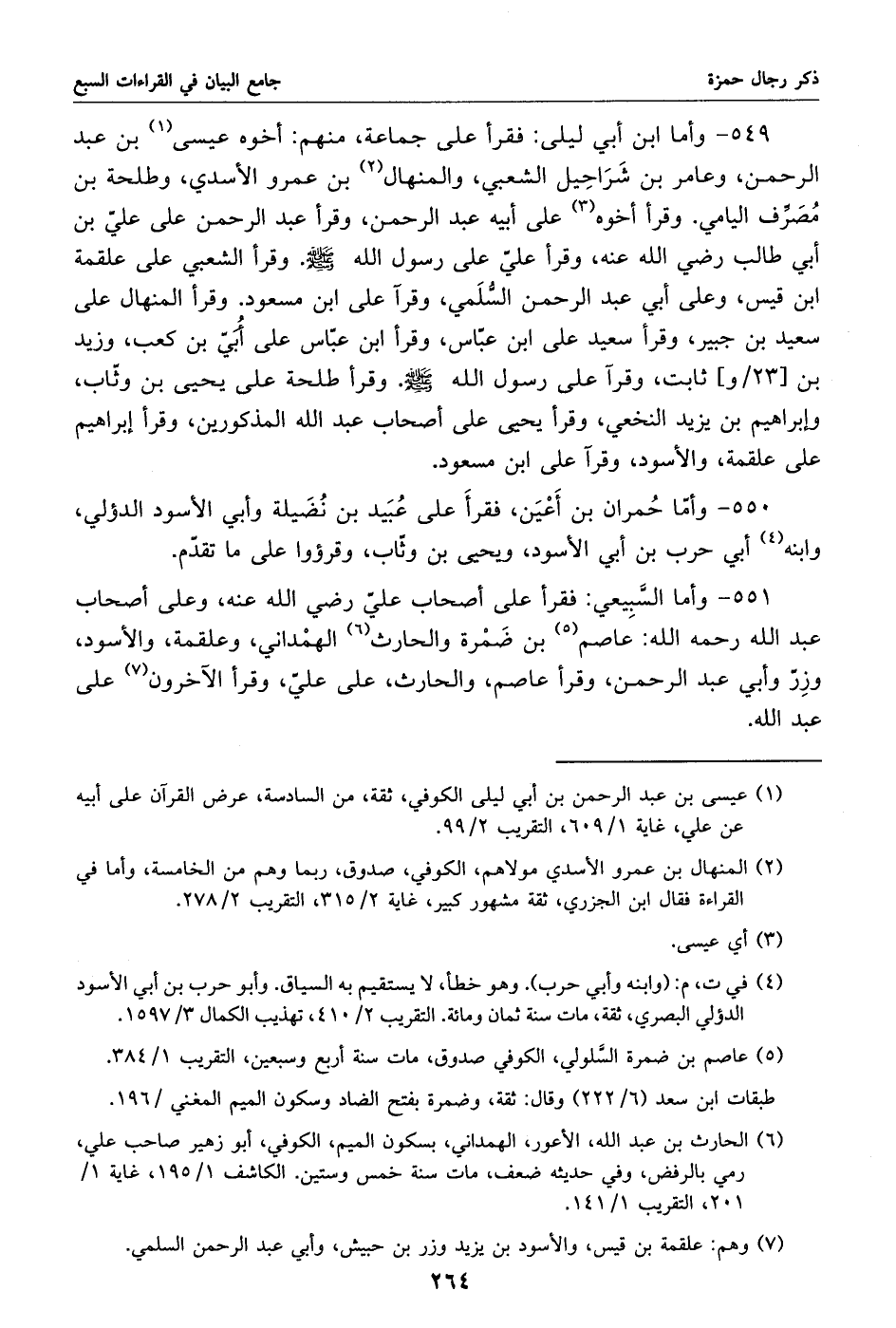 (7) وهم: علقمة بن قيس، والأسود بن يزيد وزر بن حبيش، وأبي عبد الرحمن السلمي.