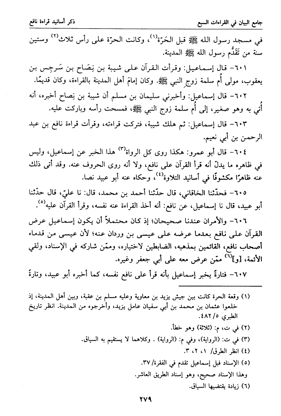 607 - فتارة يخبر إسماعيل بأنه قرأ على نافع نفسه، كما أخبره أبو عبيد، وتارة