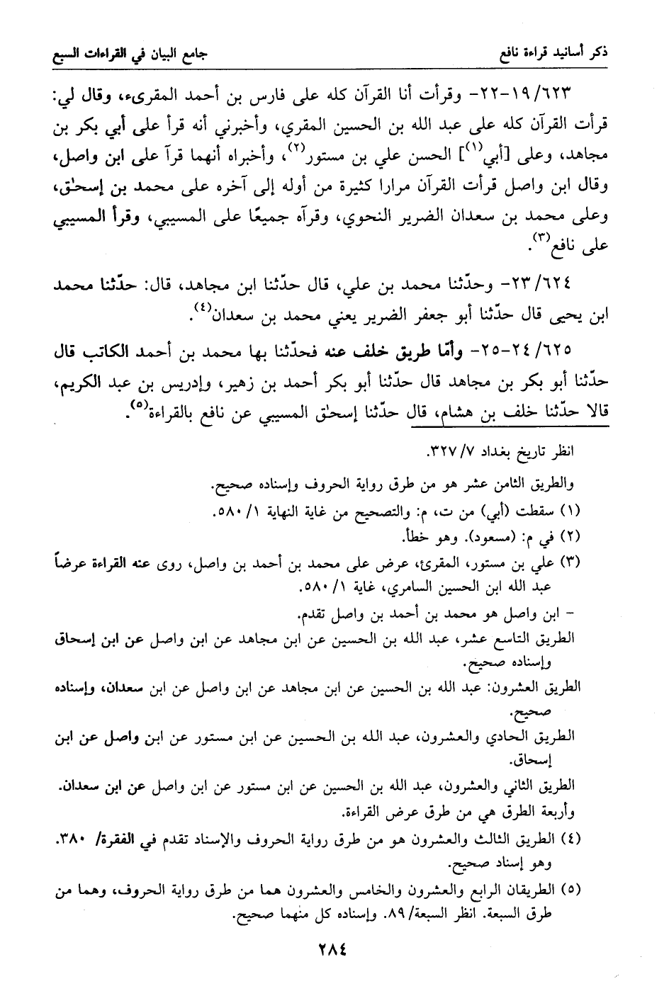 (5) الطريقان الرابع والعشرون والخامس والعشرون هما من طرق رواية الحروف، وهما من طرق السبعة. انظر السبعة/ 89. وإسناده كل منهما صحيح.